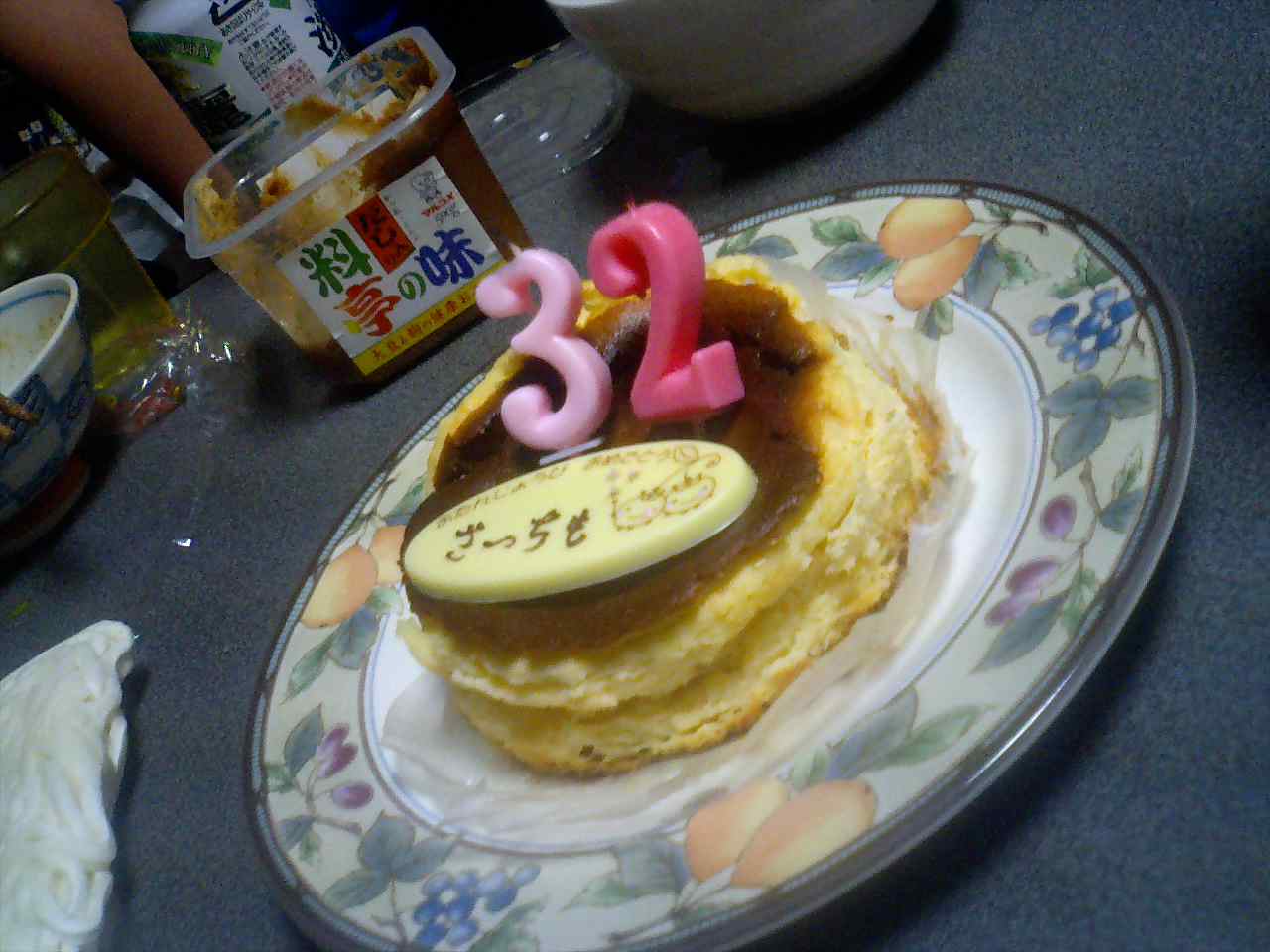 ケーキがね、32さいみたいに見えるのは、気のせいかしらね。